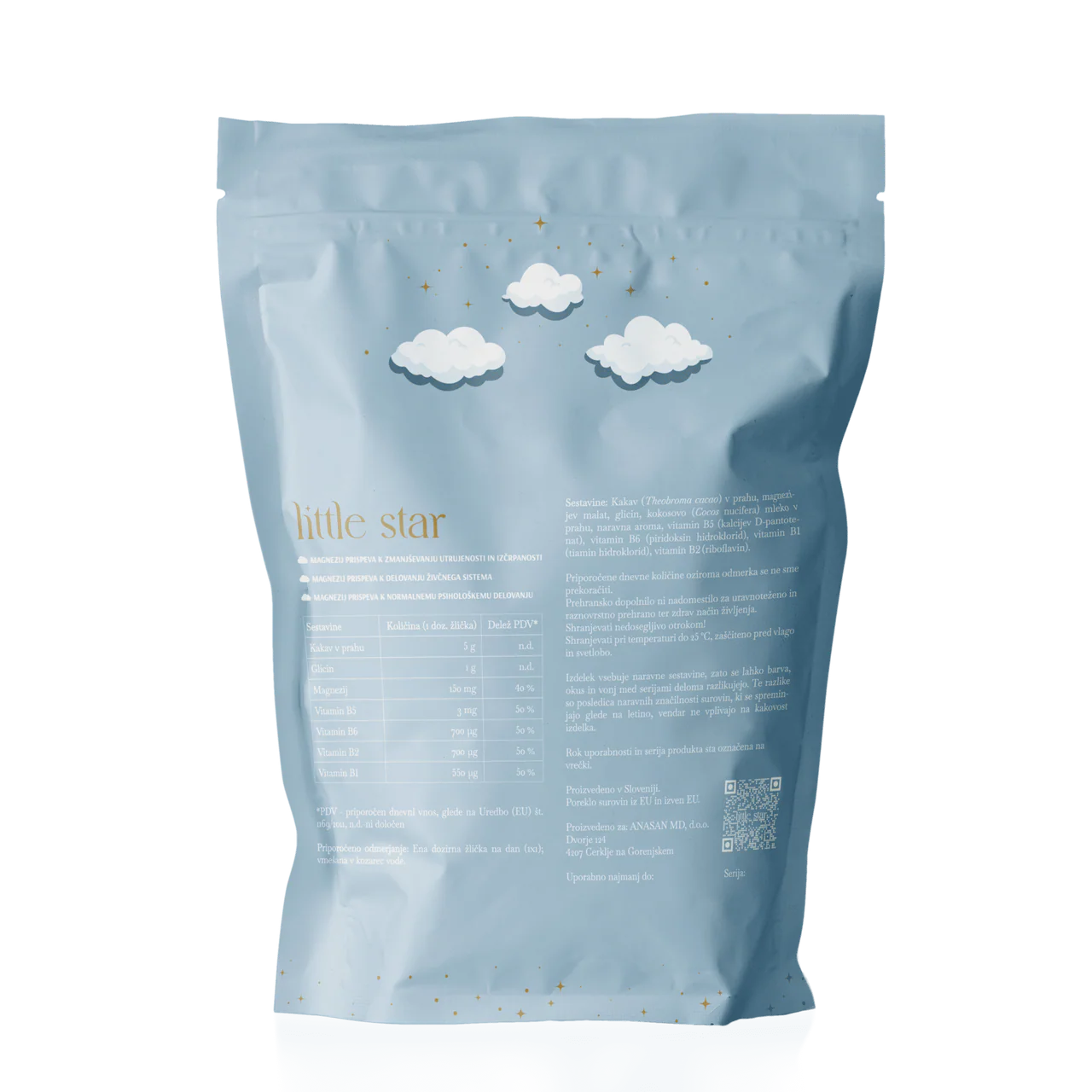 Vsebina LITTLE STAR vrečke zadostuje za 30 dni, pripravite pa ga lahko kadarkoli v dnevu tako, da eno poravnano dozirno žličko zmešate v kozarcu vode.